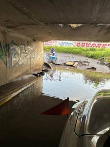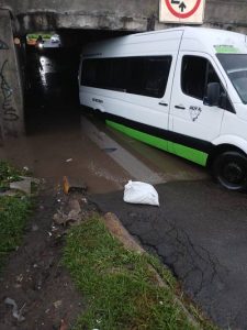 Las anegaciones han atrapado a varios vehículos en el agua, alcanzando niveles de hasta 40 centímetros en momentos de lluvias intensas. Un habitante local que ayuda a cruzar vehículos en la zona comenta: “Ya han sido varios los coches que se han quedado atorados. Cuando el nivel sube, los autos pequeños no logran pasar y tenemos que sacarlos”.
