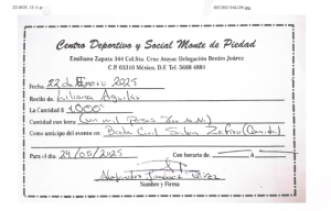 Para la investigación se realizó una visita al lugar para solicitar informes sobre la renta del salón. Una vez que Jiménez Pérez dio toda la información y mostró fotografías de eventos anteriores, se dio un anticipo para apartar el lugar y el administrador entregó un recibo a nombre del Centro Deportivo y Social Monte de Piedad.