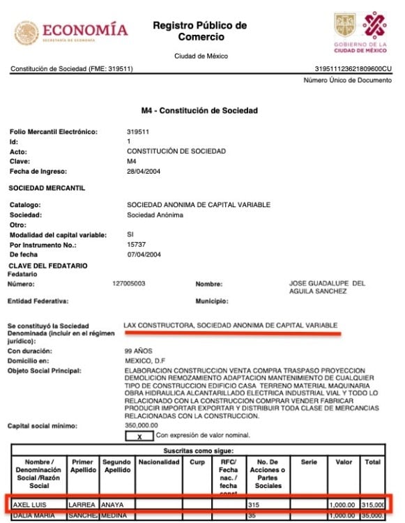 Otras son las empresas en la misma situación son LAX Constructora SA de CV y Constructora LAP SA de CV, ambas ligadas al nombre del empresario Axel Luis Larrea Anaya, que entre ambas ejercieron un total de 19 contratos por un monto total de $1,091 millones 214 mil 858.01 pesos.