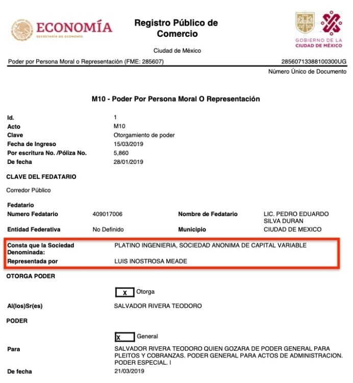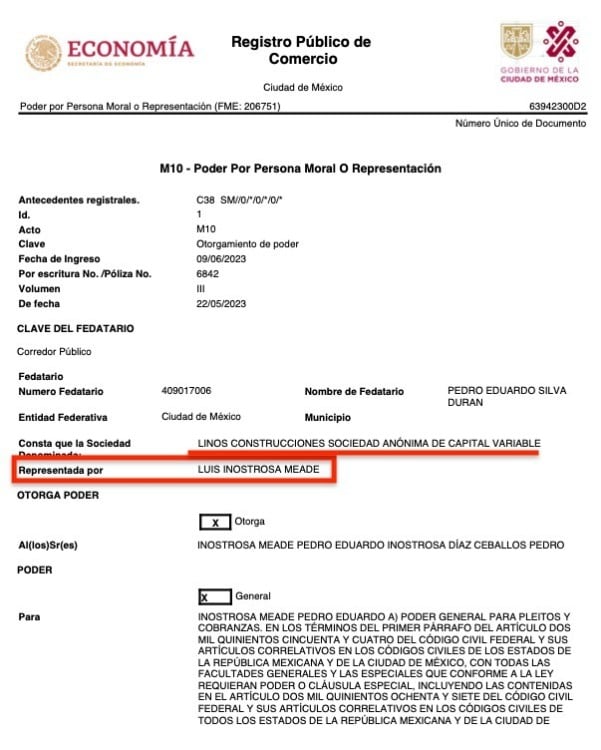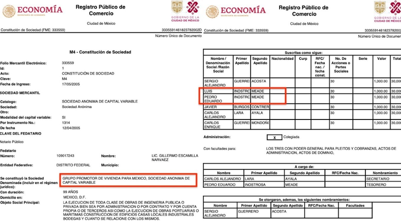 Ni hablar de la empresas Karisma Ingeniería SA de CV, Linos Construcciones SA de CV, Platino Ingeniería SA de CV y Grupo Promotor de Vivienda para México SA de CV, donde en las cuatro aparecen los nombres de los hermanos Luis y Pedro Inostrosa Meade o de Pedro Inostrosa Díaz Ceballos, ya sea como representantes legales o con poder, y en el caso de Grupo Promotor de Vivienda, aparecen como socios o accionistas.